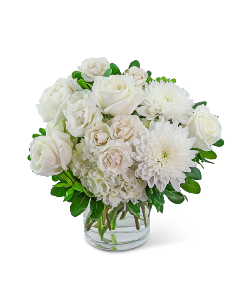 23 Dresses design features stunning, long-lasting cream and white flowers, accented with premium foliage..