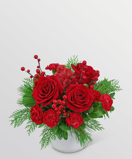 A classic holiday bouquet of flowers, Berry and Bright is a beautiful choice for any occasion. Our expert designers create a joyful design in perfect shades of red and green, featuring carnations, roses, Alstroemeria, and Grand Design foliage and berries to convey your heartfelt holiday wishes. With Christmas just around the corner and New Year's Eve on its way, we're happy to help you brighten both days with a festive bouquet.